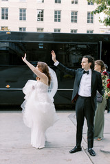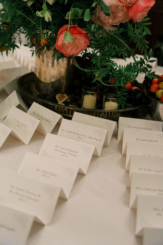 Anna and Eli were married on a perfect, blustery October day in Washington, DC. Anna is Greek, and they were married in a traditional Greek ceremony at St Sophia Greek Orthodox Cathedral. In a first for us (and the cathedral!), Anna chose to process to the ceremony as her ancestors in Greece would have done, by walking "through the town" escorted by musicians, to meet her groom outside of the church. We had the guests wait outside of the church and a Greek percussionist and violinist escorted Anna, her parents, the Koumbari, and bridesmaids up the sidewalk to the church where Eli awaited her! They moved inside for the Betrothal where the Priest blessed their rings and they walked down the aisle together for the ceremony. After the ceremony, the sunlight was glorious as they took photos across the street in the Bishop's Garden. At the Hay-Adams, we worked with autumn tones of burgundy, plum, olive, and peach, and the amazing Sidra Forman worked her magic in creating stunning floral arrangements. We also incorporated fruits, such as figs, grapes and cherries as accent pieces on the tables. Anna's gown by Mira Zwillinger has delicate trailing leaves, and we used this motif throughout the wedding, from the letter pressed invitation suite, to the day-of paper, to the show plates featuring delicate leaves, as well as sculpted sugar flowers on the wedding cake. Please enjoy these beautiful photos taken by Amelia Johnson Photography.